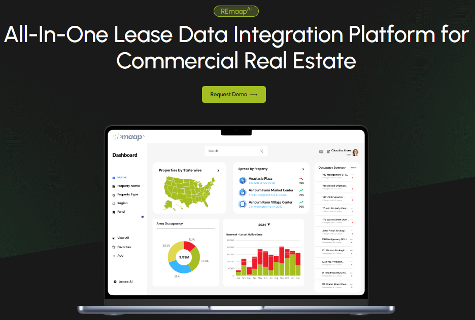 REmaap focuses on property managers and landlords managing smaller portfolios. The platform uses Generative AI for lease analysis. It provides natural language interfaces for querying lease information.